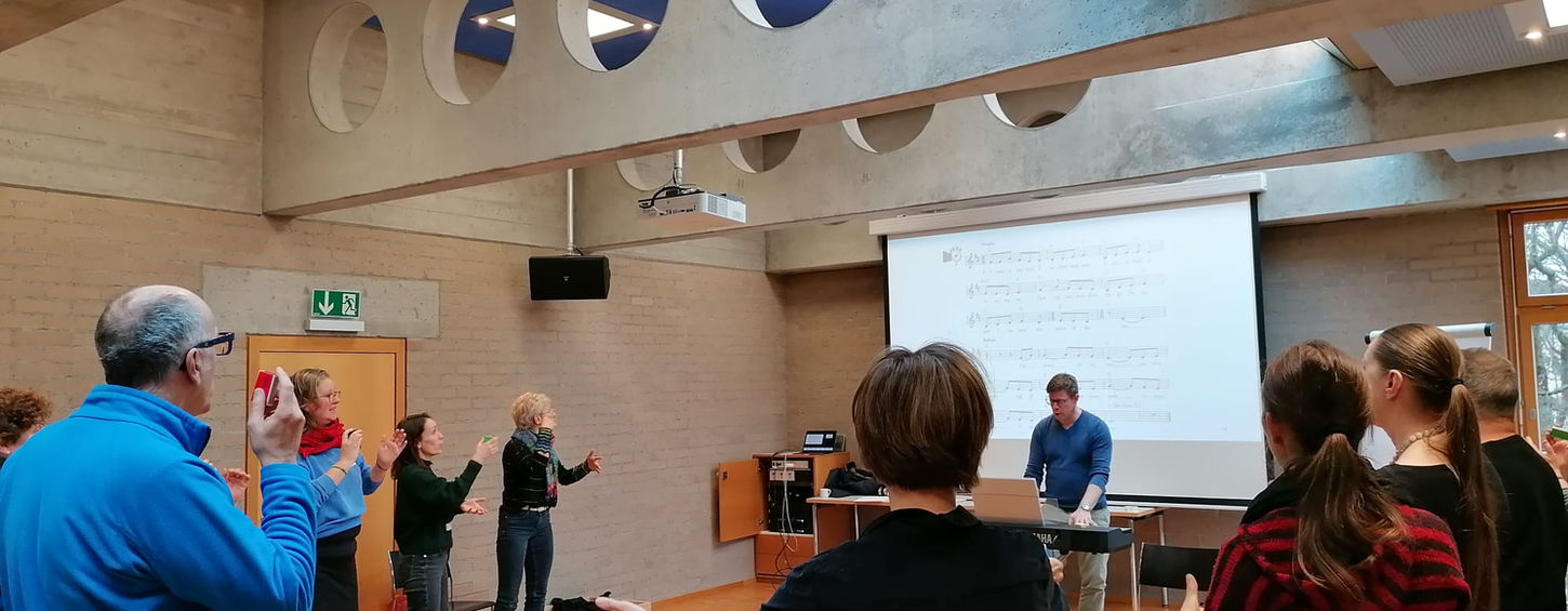 Mit Spielen, Stimmübungen, Kanons und Circlesongs erprobten die Teilnehmenden, wie sich musikalische Inhalte durch Gestik, Mimik und Bewegung vermitteln lassen. Der Kurs zeigte praxisnah, wie Chorleitende mit klarer Körpersprache Klang formen, Aufmerksamkeit bündeln und selbst im Konzert unterstützend wirken können – für lebendige Probenarbeit und magische musikalische Momente.